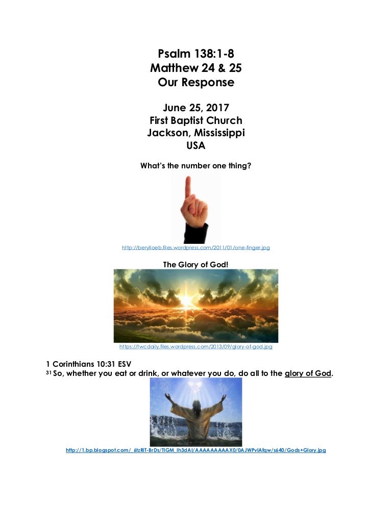 06 25 17 Psalm 138 1 8 Matthew 24 25 Our Response